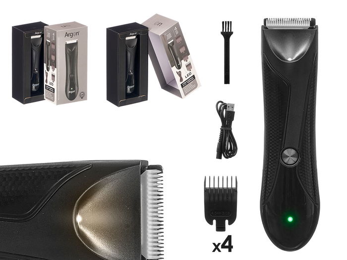 Argon Recortadora Negra con 4 Accesorios, Batería 600mAh USB, IPX5, 14.9x3.2x3.8 cm (Set de 12)