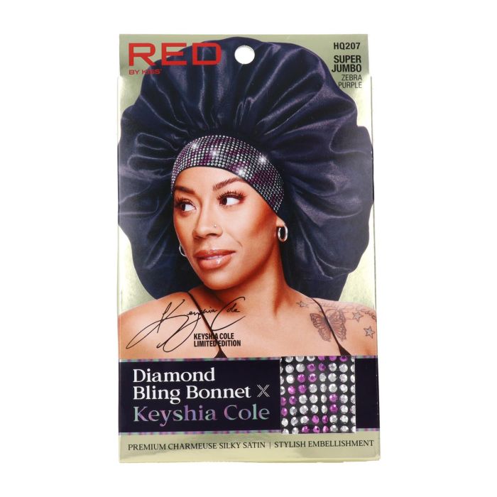 Red Kiss Diamond Bling Bonnet Sj Purple Zebra Capa de cabello Satín