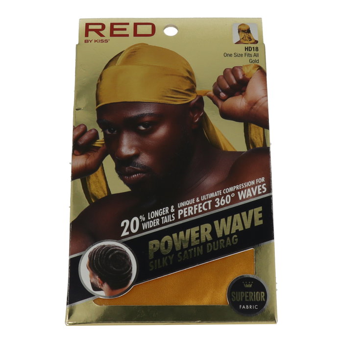 Durag profesional fabricado con tejido elástico y brillante de alta calidad que ofrece máxima compresión sin marcas. Ideal para mantener peinados crear ondas 360 y proteger el cabello durante el descanso. Con costuras suaves doble capa y acabado dorado elegante para uso profesional o urbano.