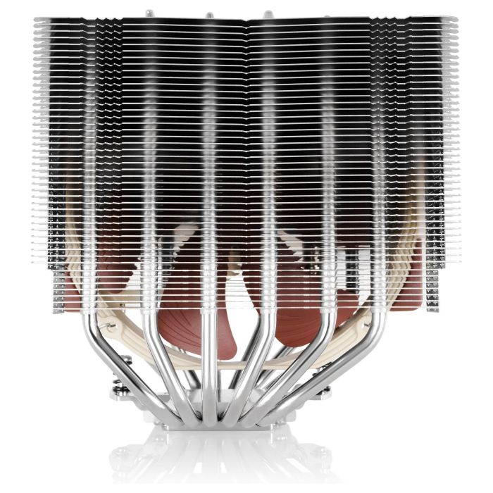 Utilizando los ganchos del ventilador adicionales que se suministran, el NH-D15S puede actualizarse con un segundo ventilador de marco redondo de 140 mm con orificios de montaje de 120 mm (como el NF-A15) para un rendimiento máximo o con un ventilador común de 120 mm (como el NF-F12) para mejorar el rendimiento manteniendo la compatibilidad con los módulos RAM de hasta 45 mm de altura.