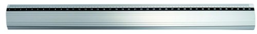 Regla antideslizante de gran rigidez, fabricada en aluminio color plata anodizado y serigrafiada en rojo para una fácil lectura. Se presenta con funda plástica para su transporte.