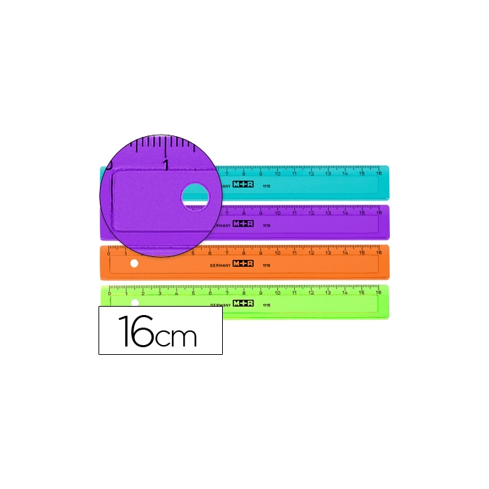 Mor Regla 16 cm Plástico Graduada y Biselada Colores Surtidos