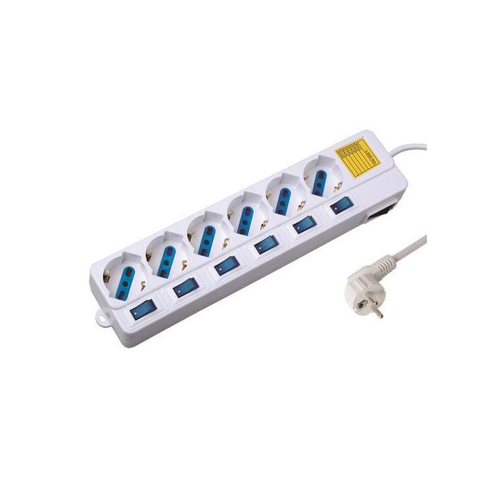 Seguridad de sus dispositivos contra sobretensiones con EW3932 a 6 tomas de corriente con protección contra sobretensiones y los interruptores individuales. Gracias a los interruptores individuales se puede desactivar en un solo dispositivo sin tener que apagar todos los dispositivos conectados. Todas las seis tomas son protegidas para la seguridad de los niños.