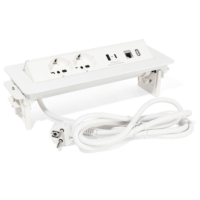 ILIMINACION Y ACC. Regleta Enchufes Basculante SWING-S Aluminio Blanco/Negro con 2 Schuko, 1 USB-A, 1 USB-C y RJ45
