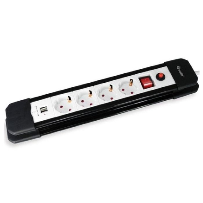 Equip Regleta con 4 Tomas + 2 USB con Cable 1.5m y Botón de Apagado y Encendido