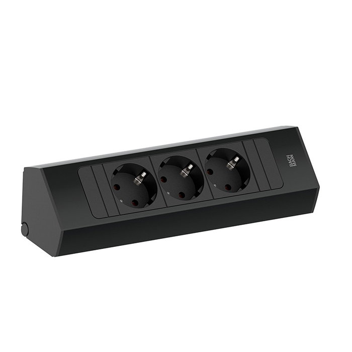 Bachmann Regleta Esquinera CASIA 2 3XTT Negra para Cocina, 3 Enchufes Schuko, Compacta y Funcional, Máximo Aprovechamiento del Espacio