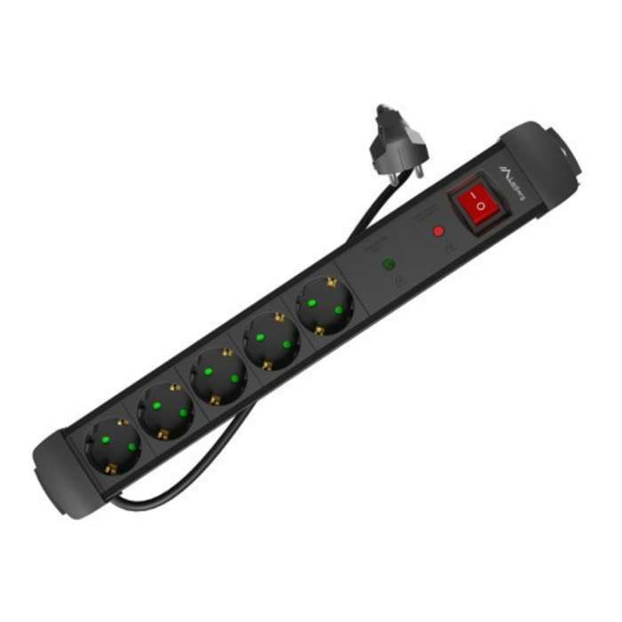 LANBERG SP1-05F-0300-BK Base Múltiple 3m 5 Salidas AC Interior Negro Supresor de Sobretensiones