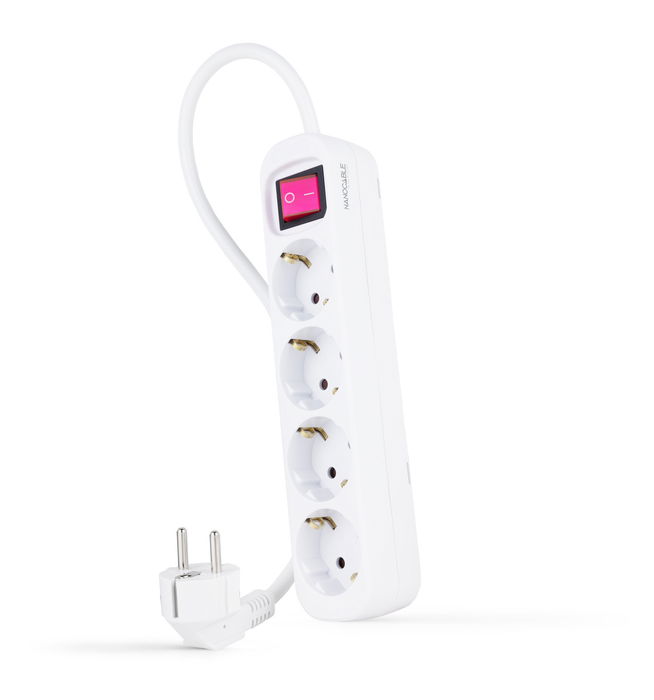 Especificacion:4 tomas de corriente con toma de tierraProteccion infantilVoltaje: 250V-50HzMaximo 3.680WCertificado CE, ROSH, GS y REACHColor: BlancoMedidas del producto: 230x47x42 mmContenido del paquete:1 x Regleta de enchufes de 4 tomas con interruptor, 1.4 m blancaInformacion del embalaje:Bolsa retailPeso aprox. (kg): 0,36Medidas aprox. (mm) alto/ancho/largo: 280/150/60