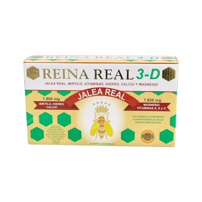 ROBIS Reina Real 3 Edad 20Amp Suplemento Jalea Real para Tercera Edad con Vitaminas C y E, Calcio, Magnesio y Hierro 10 Ampollas