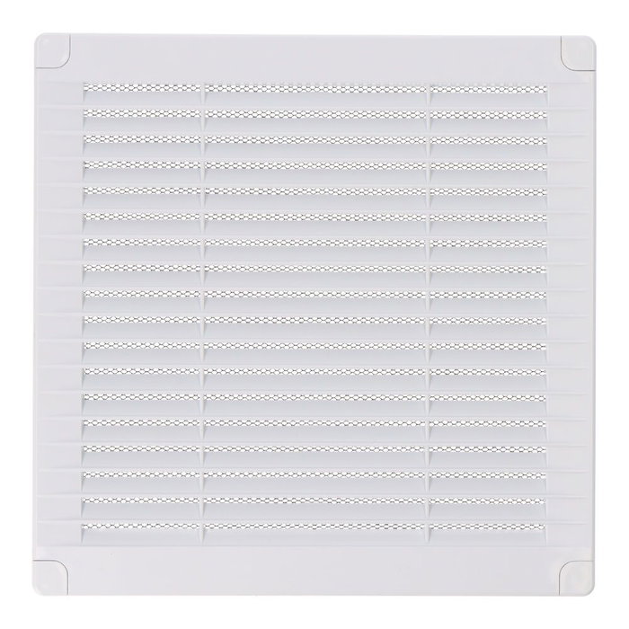 Rejilla ventilación cuadrada de plástico con tapones y mosquitera. medida: 200x200x7mm. color blanca
