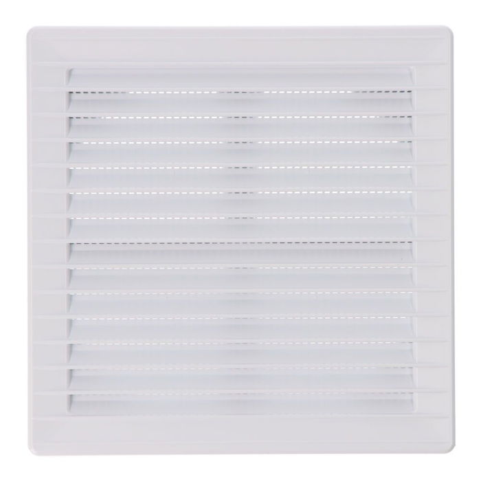 Rejilla ventilación cuadrada empotrable ajustable con mosquitera, medida enclavamiento ø 80-150, medida 170x170x11,5mm de plástico blanca