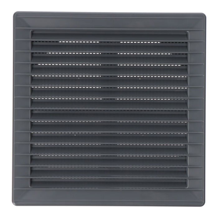 Rejilla ventilación cuadrada empotrable ajustable de plástico con mosquitera, medida enclavamiento ø 80-150 medida 170x170x11,5mm gris