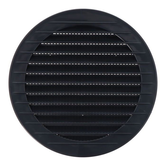 Rejilla ventilación redonda de plástico empotrable con mosquitera. medida enclavamiento: ø120mm, medida :150mm.color gris antracita