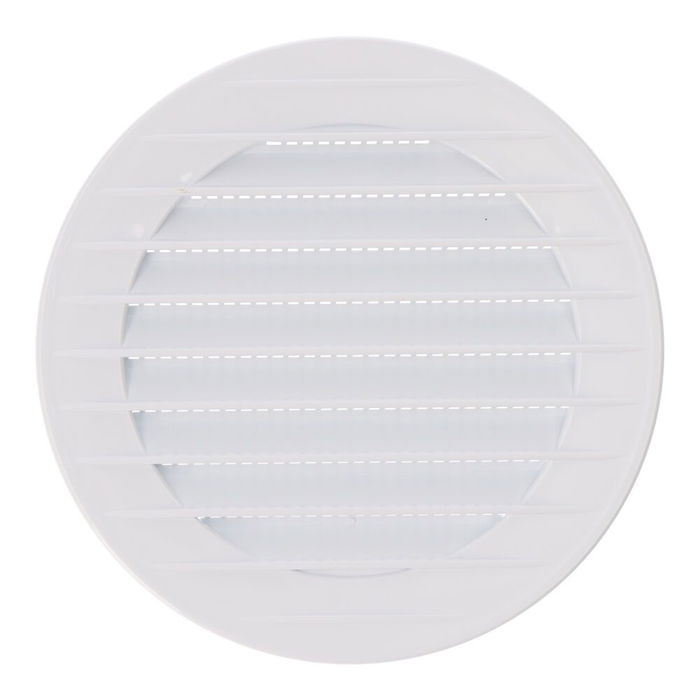 Rejilla ventilación redonda empotrable de plástico con mosquitera, medida enclavamiento: ø90mm, medida: ø120mm, color blanca
