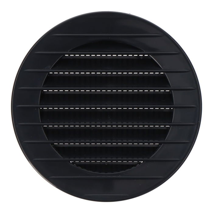 Rejilla ventilación redonda de plástico empotrable con mosquitera, medida enclavamiento: ø80mm, medida: 110mm, color gris antracita.