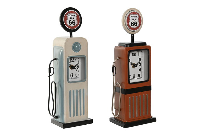 DKD Home Decor Reloj Sobremesa Vintage Naranja Azul Gasoliner Metal Cristal 7.5 x 32 x 12 cm (2 Unidades)
