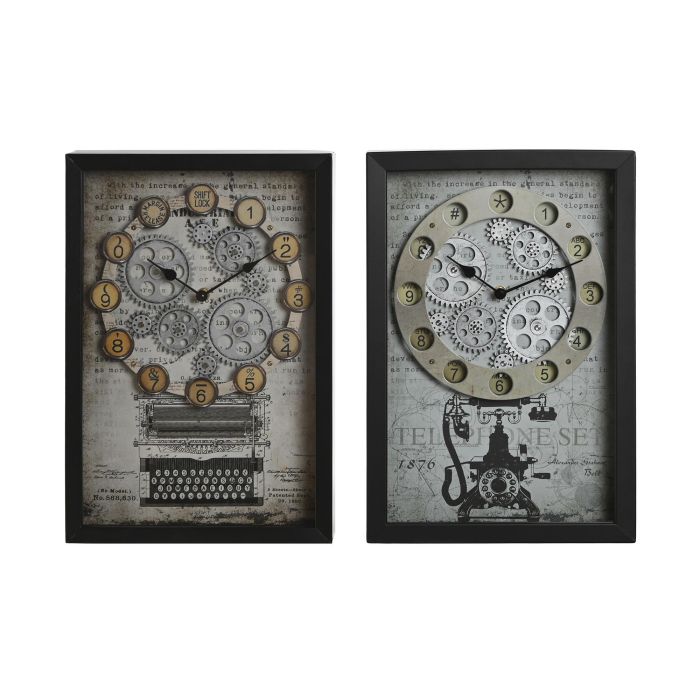 DKD Home Decor Reloj de Pared Vintage Negro Blanco Metal Cristal 27.5 x 40.5 x 6.5 cm (2 Unidades)