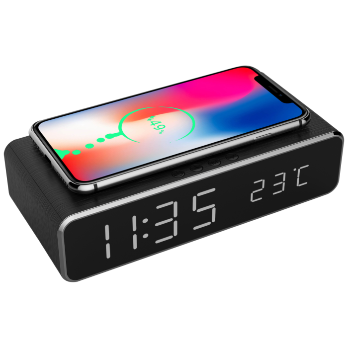 Gembird DAC-WPC-01 Reloj Despertador Digital con Carga Inalámbrica Negro