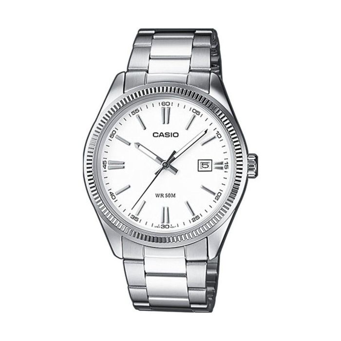 El reloj hombre Casio MTP-1302PD-7A1VEF es un accesorio diseñado para quienes buscan funcionalidad y resistencia en un diseño clásico y versátil. Este modelo pertenece a la colección Casio Collection, reconocida por su fiabilidad y estilo atemporal. Su correa de acero inoxidable ofrece durabilidad y un acabado elegante que combina con cualquier atuendo, proporcionando además un ajuste seguro gracias a su tipo de cierre de hebilla. La caja, también fabricada en acero inoxidable, garantiza protección y robustez para el mecanismo interno, adecuado para el uso diario. Destaca por su color blanco que aporta luminosidad y elegancia, facilitando la lectura de la esfera. Entre sus funciones principales, incorpora una práctica ventana de fecha que permite al usuario llevar un control sencillo del día, una característica fundamental para relojes de uso cotidiano. El reloj está concebido específicamente para el género masculino, adaptando sus dimensiones y diseño a un público que valora la combinación de estilo con funcionalidad. Este modelo es una muestra del compromiso de Casio por ofrecer productos accesibles que combinan materiales resistentes con un diseño sobrio, ideal para uso tanto en entornos formales como informales. En definitiva, este reloj Casio proporciona una propuesta equilibrada en términos de calidad, estética y utilidad, posicionándose como una opción confiable para el hombre que valora un reloj clásico con características esenciales.