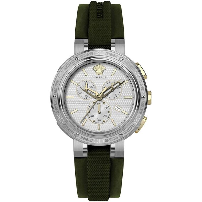 El reloj hombre Versace VE2H00121 representa la fusión entre el diseño sofisticado y la funcionalidad avanzada propia de la relojería suiza, siendo una opción destacada para quienes buscan elegancia y versatilidad en su muñeca. Este modelo, diseñado específicamente para el público masculino, se configura como un accesorio contemporáneo con funciones multifunción que proporcionan utilidad en el día a día, asegurando un control preciso del tiempo gracias a su reconocida fabricación Suiza. Presenta una caja de acero inoxidable que no solo confiere resistencia y durabilidad, sino que resalta la estética característica de la marca Versace, combinada con una correa de caucho de color verde, que aporta un matiz deportivo y moderno sin renunciar al confort en el uso prolongado. Además, este reloj ofrece una impermeabilidad de 5 ATM, permitiendo su uso sin preocupaciones en situaciones de contacto con el agua, como lluvia o lavado de manos. La elección de materiales como el acero inoxidable y el caucho muestra una clara apuesta por la robustez y el estilo, haciendo del VE2H00121 un reloj adecuado tanto para ocasiones formales como actividades cotidianas. Este modelo de Versace se posiciona como una pieza emblemática de la relojería masculina actual, combinando el refinamiento estético con la practicidad y fiabilidad suiza.