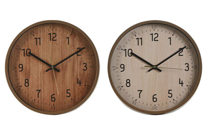 DKD Home Decor Reloj de Pared Cottage Natural Marron PVC 30 x 30 cm (2 Unidades)
