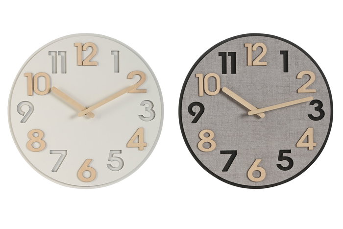 DKD Home Decor Reloj de Pared Loft Gris Natural MDF 30x30x5 cm (2 Unidades) 1x AA