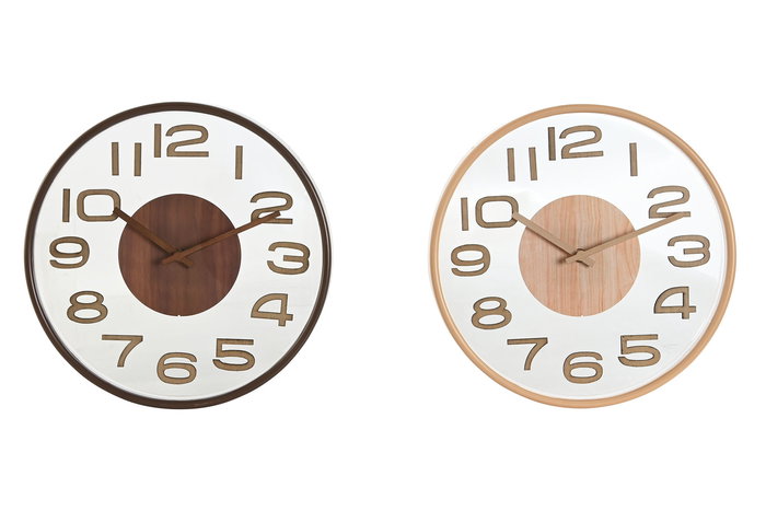 DKD Home Decor Reloj de Pared Scandi Natural Marron 4.7 x 30 x 30 cm (2 Unidades)
