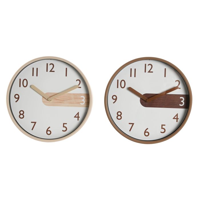 DKD Home Decor Reloj de Pared Scandi Natural Marron 4.7 x 30 x 30 cm (2 Unidades)