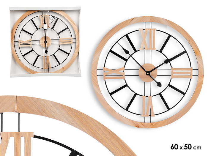 Reloj de Pared Giftdecor 60x60x4.5 cm Negro y Madera Metal MDF (Set de 4)