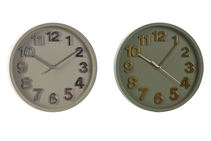 DKD Home Decor Reloj de Pared Verde Gris 4x30x30 cm (2 Unidades) PVC Batería AA