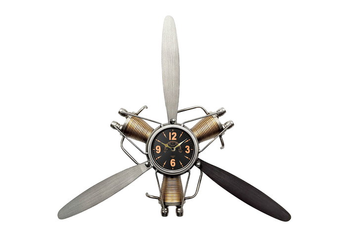 DKD Home Decor Reloj de Pared Bolai avion 25 Vintage Plateado Dorado 63 x 55 x 12 cm