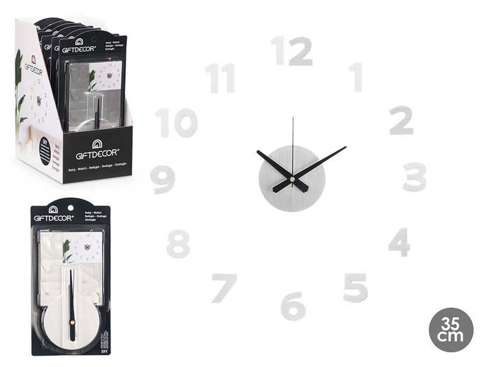 RELOJ PEGATINA 35 CM NUMEROS SATINADO PLATA