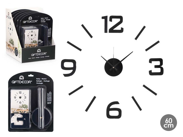 Reloj Pegatina Giftdecor 60 cm Negro Brillo (Set de 12)