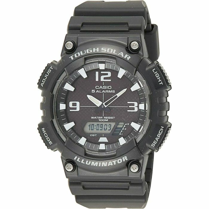 El Casio AQ-S810W1AVEF es un reloj para hombre que combina funcionalidad y durabilidad en un diseño discreto y práctico. Su caja y correa están fabricadas en resina negra, un material ligero y resistente que facilita el uso diario sin perder comodidad, ideal para quienes buscan un complemento robusto y de bajo mantenimiento. La esfera negra proporciona una lectura clara y sencilla, complementada con características típicas de la colección Casio Collection orientada a usuarios que valoran la fiabilidad clásica. Este modelo pertenece a una familia de relojes solares, lo que implica que puede cargarse con luz natural o artificial, optimizando así la autonomía y reduciendo la necesidad de cambio frecuente de pila. Su diseño sobrio y funcional se adapta perfectamente a entornos tanto casuales como deportivos, ofreciendo versatilidad sin renunciar a una estética elegante y minimalista. En resumen, el Casio AQ-S810W1AVEF representa una opción práctica y resistente para el hombre moderno que busca un reloj funcional, con construcción ligera y materiales que garantizan una larga vida útil.