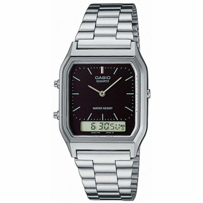 El reloj unisex Casio AQ-230A-1DMQYES combina un diseño clásico con funcionalidades prácticas, ideal para quienes buscan un accesorio atemporal y resistente. Construido con una caja de acero inoxidable que ofrece durabilidad y un acabado elegante en color negro, este modelo integra una correa metálica plateada que aporta un aspecto moderno y versátil, apto para cualquier ocasión. Su configuración incorpora funciones esenciales como alarma y calendario, facilitando la gestión diaria del tiempo. Además, está fabricado con materiales de resina que garantizan ligereza y resistencia, mientras que su estructura es resistente al agua, lo que proporciona mayor seguridad frente a salpicaduras cotidianas y facilita su uso cotidiano. Aunque no incluye eslabones extra para ajustar la correa, su diseño metálico asegura un ajuste cómodo y fiable en la muñeca, adecuado tanto para hombres como para mujeres. Este reloj vintage refleja la tradición de calidad de Casio, manteniendo un equilibrio perfecto entre funcionalidad básica y estilo sobrio, adecuado para usuarios que valoran la practicidad y una estética discreta. En definitiva, el Casio AQ-230A-1DMQYES es una opción sólida en relojería ligera y duradera que cumple con las necesidades esenciales de tiempo y alarma en un formato compacto y estilizado.