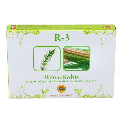 ROBIS R-3 Diurético 60 Comp. Indicado para afecciones renales, retención de líquidos, cálculos y cistitis.