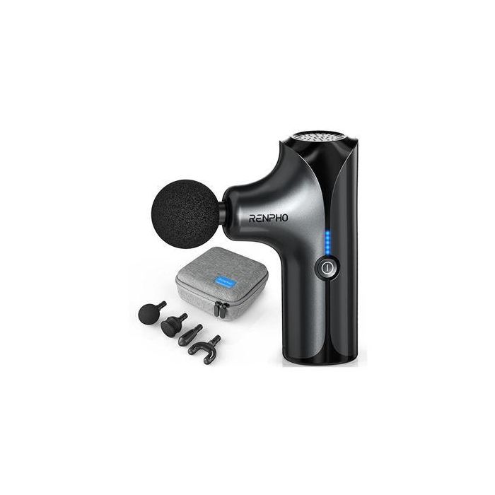 Renpho Pistola Masajeadora Mini PEU-RP-GM173-BK, 4 Cabezales, 5 Velocidades, Negra