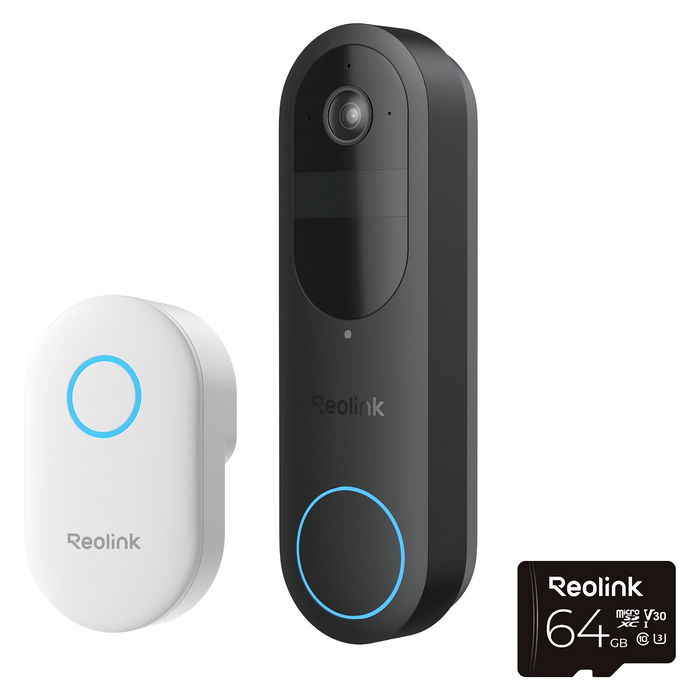 Reolink Timbre Inteligente D340B con Cámara 4MP, Ángulo 180°, Wi-Fi, Visión Nocturna y Tarjeta MicroSD de 64GB Incluida