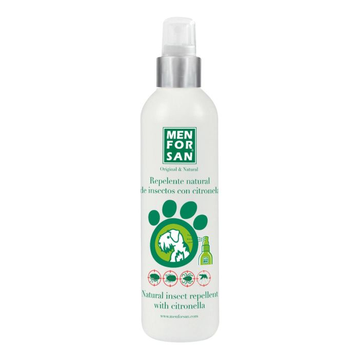 - Observaciones: Spray repelente de insectos para perros con CITRONELA, repelente natural muy efectivo contra todo tipo de insectos voladores (moscas, mosquitos, avispas). Además protege de pulgas, garrapatas, chinches y ácaros. Por su composición natural no tiene efectos secundarios ni contraindicaciones y es muy seguro de utilizar en hembras gestantes y cachorros.
