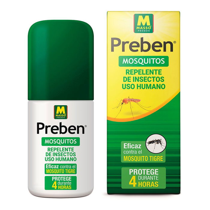 Repelente antimosquitos en spray 100ml para uso humano. eficaz incluso en el tropico. formato apto para el avion. protege de las picaduras de mosquitos (4h), chinches (1h) y garrapatas (7h). pulverizador comodo y facil de usar. no gotea preben masso