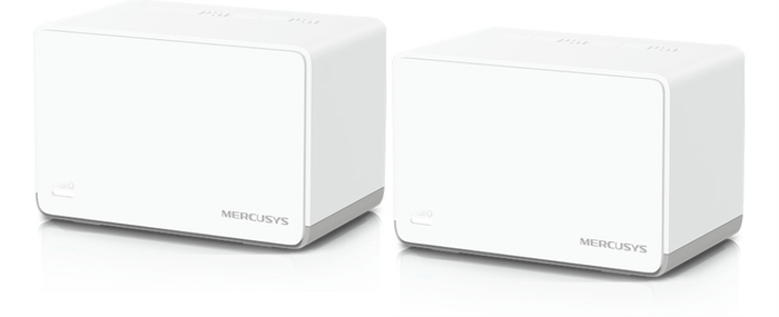 Mercusys HALO H70X (2-PACK). Color del producto: Blanco, Tipo de antena: Interno, Tipo de producto: Sistema de malla. Banda Wi-Fi: Doble banda (2,4 GHz / 5 GHz), Estándar Wi-Fi: Wi-Fi 6 (802.11ax), Wi-Fi estándares: 802.11a, 802.11b, 802.11g, Wi-Fi 4 (802.11n), Wi-Fi 5 (802.11ac), Wi-Fi 6 (802.11ax). Seguridad con cortafuegos: SPI Firewall. Ancho: 128 mm, Profundidad: 81 mm, Altura: 83,7 mm. Número de productos incluidos: 2 pieza(s), Número de unidades incluidas: 2 pieza(s)