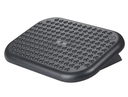 Reposapiés ajustable en altura. Base antideslizante. Superficie de efecto masaje que favorece la circulación de la sangre en las piernas. Ángulo: 0-15°. Medidas: 448 x 90 x 325 mm.