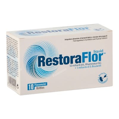 Posologia: Tomar 1 frasco al día 30 minutos antes o durante una comida, o al menos 2 horas antes de la administración de un antibiótico oral. RestoraFlor™ líquido puede administrarse directamente del frasco o diluido en agua o zumos de frutas a temperatura ambiente.