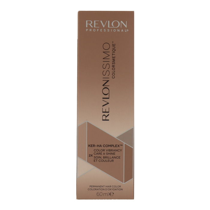 Coloración profesional Revlonissimo Colorsmetique 4.15 tono medio mahogany ceniza con cobertura de canas brillo intenso y fórmula equilibrada. Ideal para lograr acabados sofisticados con matiz cálido-cenizo.
