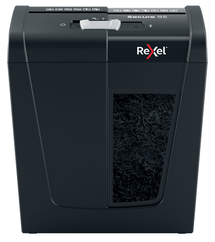 Rexel Secure S5. Tipo de triturador de papel: Corte en tiras, Tamaño de trituración de papel: 6 mm, Capacidad de la cesta: 10 L. Ancho: 288 mm, Profundidad: 164 mm, Altura: 355 mm