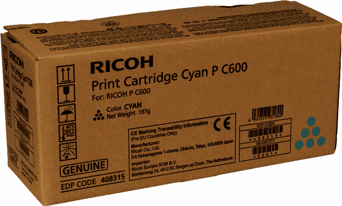 Ricoh Toner MP C600 / 408315 Cyan - Cian para Impresoras Ricoh MP C600