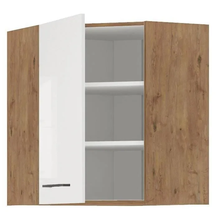 Rock Mueble alto de esquina ROCKGANGLEWH Roble Lancelot y melamina blanca brillo 58 x 58 cm