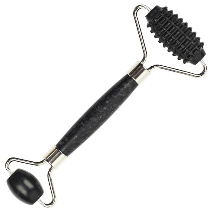 Cosmetic Club Masajeador Facial Jade Negro con Doble Rodillo Liso y con Bultos para Reafirmar y Alisar Todo Tipo de Piel