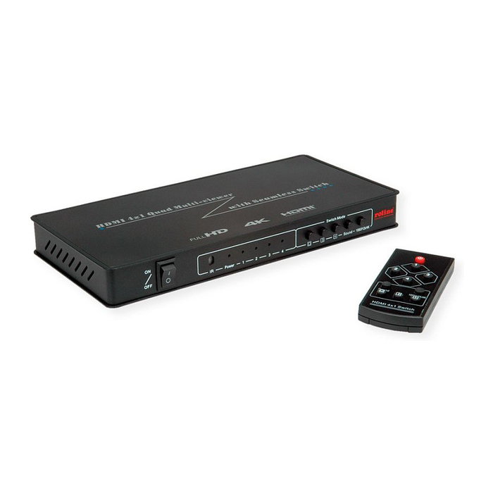 ROLINE Conmutador HDMI 4x1 QUAD Multi-Viewer, Metal Negro, 225 MHz, 4K 3840x2160, Plug & Play, Modelo 14.01.3596