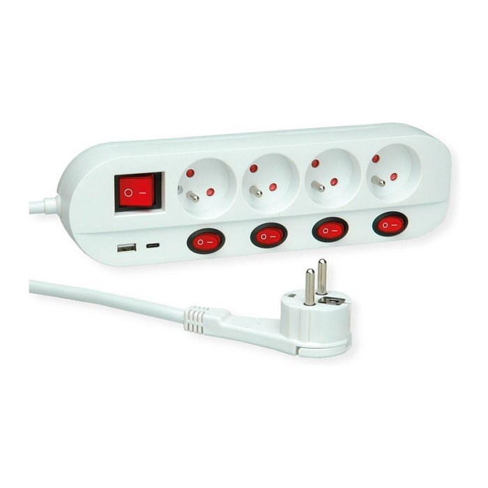 ROLINE 19.07.2346, 1,5 m, Interior, Type EF (CEE 7/7), Angular, Blanco, 4 salidas AC